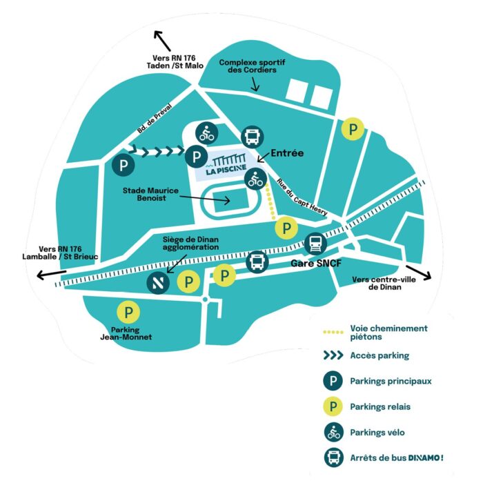 Pour rejoindre La Piscine – Espace aquatique de Dinan Agglomération, plusieurs solutions simples