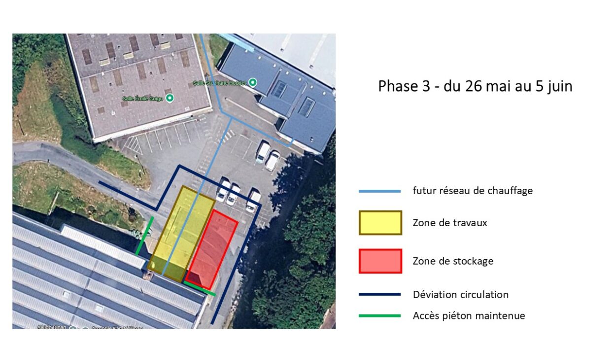 Dans le cadre du déploiement du réseau de chaleur urbain, des travaux seront réalisés à compter du lundi 30 mars nécessitant la mise en place de déviations.
