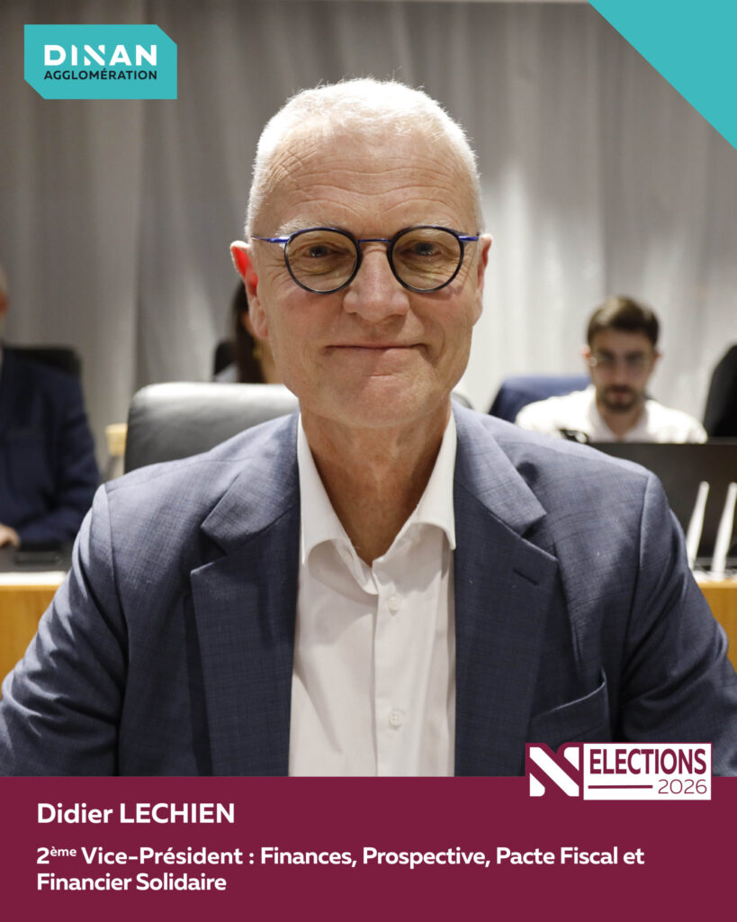 Didier Lechien, Maire de Dinan, a été élu 2ème Vice-Président en charge des Finances, de la prospective et du pacte fiscal et financier solidaire.